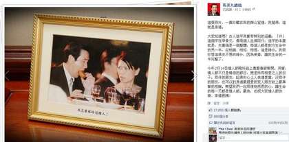 馬英九說,“這張照片,一直珍藏在我的辦公室里,我覺得,這就是幸福。”他認(rèn)為,“伴”字像2個(gè)人并肩同行,造字本意為夫妻是1個(gè)整體,每個(gè)人都是對(duì)方生命中的另一半,從相識(shí)、相知、相惜,即是緣分。