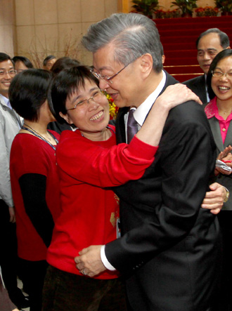 中國臺灣網2月18日消息 臺當局“行政院長”陳沖今天從“行政院”“畢業”,太太柯長珠獻上愛的擁抱,親自開車接口中念著的“陳先生”回家,陳沖紅了眼眶。