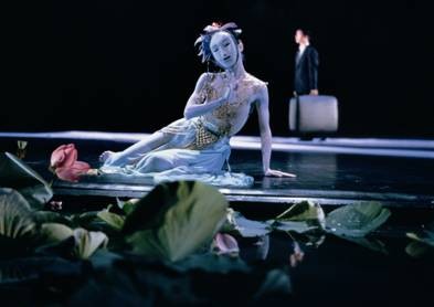 全身火紅狂舞顫抖著迎接東君到來的女巫,高踩在兩位舞者肩上、腳不踏地御馳乘風的云中君,荷花池畔孤獨等待愛人的湘夫人,森林深處幽幽飄蕩張嘴卻又無言的山鬼,一個個經典形象深深舞進觀眾的腦海中。