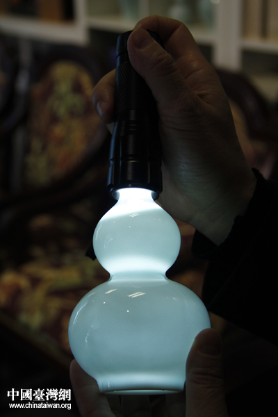 溫潤如玉的陶瓷酒瓶。(中國臺灣網 王偉 攝)