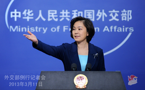 2013年3月11日,外交部發(fā)言人華春瑩主持例行記者會。 圖片來源:外交部網(wǎng)站