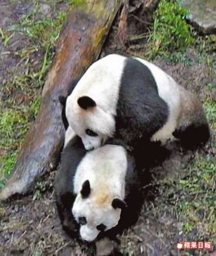 團(tuán)團(tuán)(上)、圓圓(下)昨交流熱絡(luò),不時(shí)出現(xiàn)咬背挑逗的行為。(圖片來自臺(tái)媒)