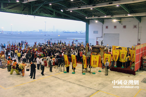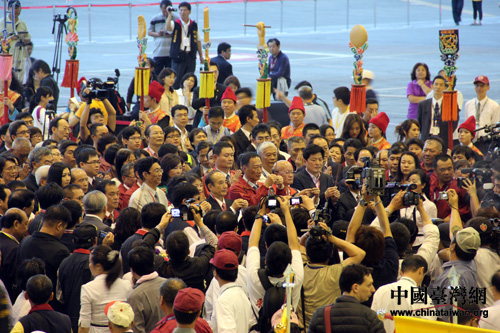 中國臺(tái)灣網(wǎng)3月30日高雄消息 山西關(guān)公祖廟圣像接駕儀式29日下午在臺(tái)灣高雄小港國際機(jī)場隆重舉行。臺(tái)灣立法機(jī)構(gòu)負(fù)責(zé)人王金平、臺(tái)灣鴻海科技集團(tuán)董事長郭臺(tái)銘、中華道教關(guān)圣帝君弘道協(xié)會(huì)總會(huì)長陳展松等親迎圣像。(中國臺(tái)灣網(wǎng)記者 李典典)