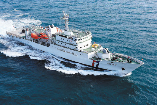 馬英九在成軍典禮上致詞表示,今天成軍不是在炫耀武力,而是為了海上執法、海上救難、海上護漁,一步步增強海上任務能力。(中國臺灣網 王文英)