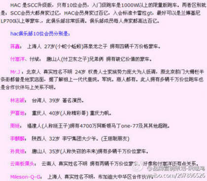 網(wǎng)絡(luò)流傳跑車俱樂部名單。(圖片來自臺(tái)媒)