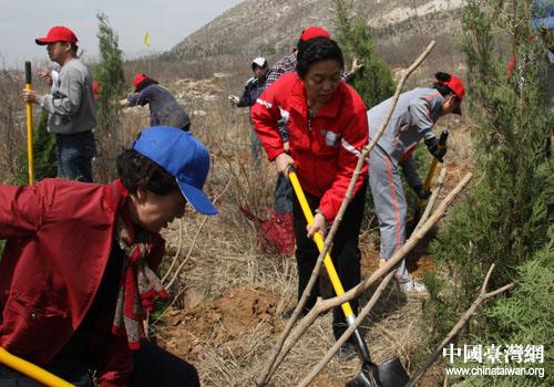 中國臺(tái)灣網(wǎng)4月13日北京消息 13日,北京市臺(tái)灣同胞聯(lián)誼會(huì)、北京臺(tái)資企業(yè)協(xié)會(huì)在北京房山區(qū)南白岱村共同舉辦了第二屆“百個(gè)家庭百棵樹”公益植樹活動(dòng)。本次活動(dòng)的主題是“種植一片綠葉,共建美麗北京”,在京臺(tái)胞、臺(tái)商、臺(tái)生共計(jì)三百余人參加此次活動(dòng)。市臺(tái)聯(lián)會(huì)長蘇輝、黨組書記汪明浩、秘書長高雙進(jìn)以及北京臺(tái)企協(xié)會(huì)副會(huì)長杜旺龍、朱芳郎、闕仁村參加本次活動(dòng)。
