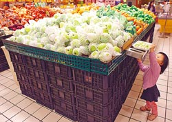 臺灣4月份 CPI同比上漲1.04%,創下近14個月以來新低。圖為小朋友在大賣場內伸長了手要拿試吃的水果。(來源:臺灣《中國時報》)