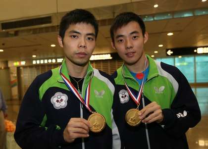 中國臺灣網5月21日消息 奪得本屆世乒賽男雙冠軍的中華臺北隊運動員陳建安、莊智淵于今天清晨6點半返抵臺灣島內,在桃園機場受到家人英雄般的迎接。
