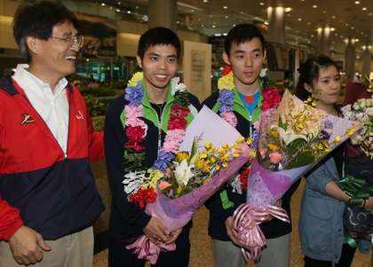 陳建安與莊智淵今晨回到島內,受到英雄般迎接。(圖片來源:臺灣媒體)