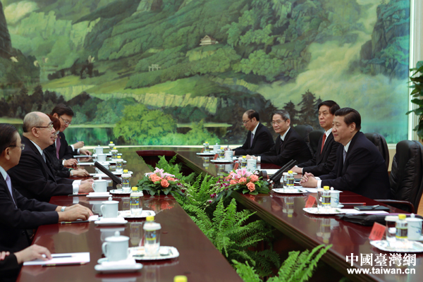 6月13日,中共中央總書記習近平在北京人民大會堂會見中國國民黨榮譽主席吳伯雄。(中國臺灣網 王偉 攝)