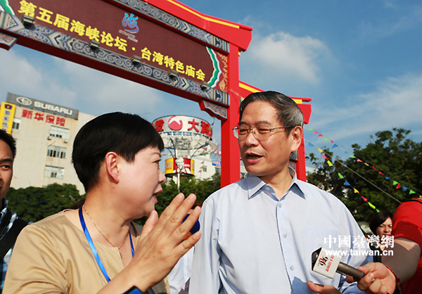 中國(guó)臺(tái)灣網(wǎng)6月16日廈門消息 今天下午,正在廈門參加第五屆海峽論壇的中臺(tái)辦主任張志軍來(lái)到臺(tái)灣特色廟會(huì),了解臺(tái)灣業(yè)者經(jīng)營(yíng)情況,品嘗地道臺(tái)味小吃。 (中國(guó)臺(tái)灣網(wǎng) 田云鵬 攝)