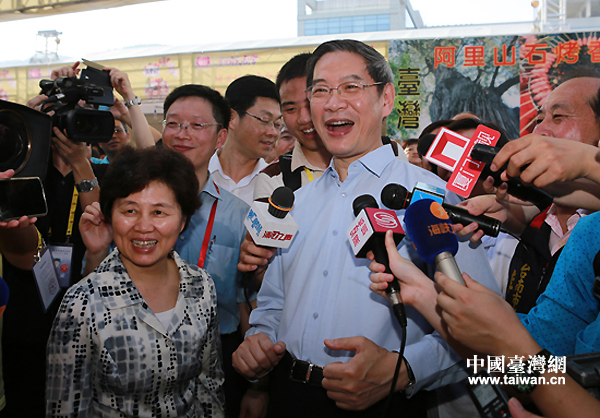 6月16日下午,中共中央臺辦主任張志軍在第五屆海峽論壇期間走進(jìn)臺灣特色廟會,了解臺灣業(yè)者經(jīng)營情況,品嘗原汁原味的臺灣小吃,大贊好呷(閩南語:好吃)!。ㄖ袊_灣網(wǎng) 田云鵬 攝)