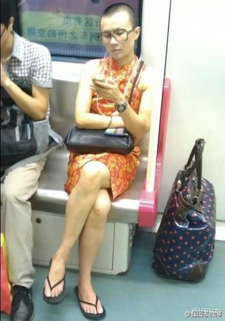 “女版文章”穿旗袍搭乘臺灣捷運。(圖片來自網絡)