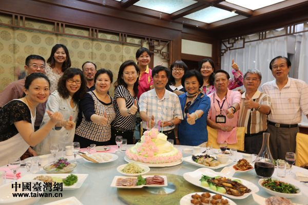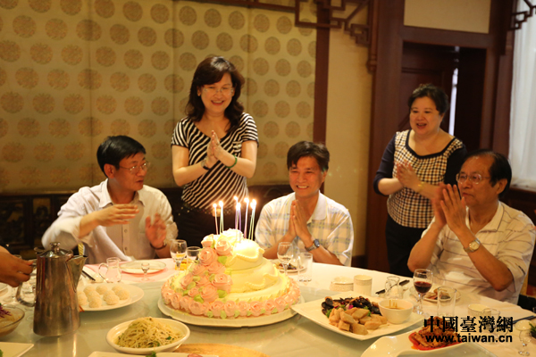 24日恰逢臺灣南方生活報媒體事業群總編輯蘇正國生日,大家在歡聲笑語中為他慶祝生日。蘇正國許下希望兩岸和平發展的愿望,更動情的說這是他此生難忘的生日。(天津市臺辦 劉晟 攝)
