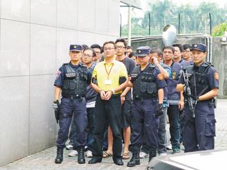 “白狼”張安樂將返臺,傳黑道可能大陣仗接機,臺“刑事局”昨天起掃黑;被視為是張安樂嫡系人馬的竹聯地堂大哥許伯獎(黃衣)被檢肅到案。(圖片來自臺媒)