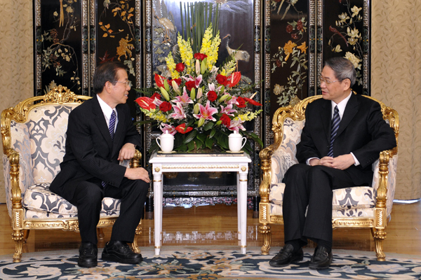 國務院臺灣事務辦公室主任張志軍30日下午在深圳會見了臺灣維新基金會董事長謝長廷,雙方就兩岸關系和平發(fā)展問題交換了意見。(新華社 梁旭 攝)