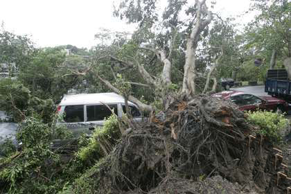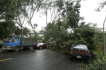蘇力臺風(fēng)肆虐,百年老樹被連根拔起。(圖片取自臺媒)