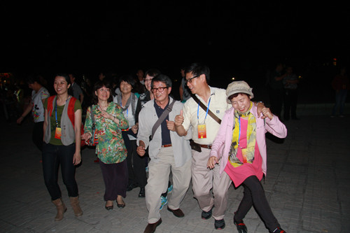 臺灣嘉賓在篝火晚會上盡情的舞著(中國臺灣網 蕪同 攝)
