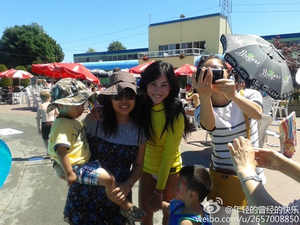 張柏芝親切與路人合照聊天,完全沒架子。(圖片來自臺媒)