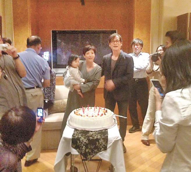 張學友(左起)、邱復生、陳文茜在羅大佑慶生會合影。(圖片來自臺媒)