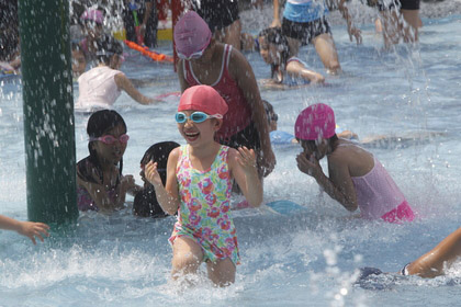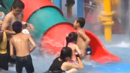 臺北市中午出現今夏最高溫,臺北自來水源區擠滿戲水民眾。(圖片取自臺灣媒體)