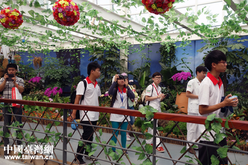 兩岸紅十字青少年夏令營團員參觀園博會臺灣園蘭花館。(中國臺灣網發)