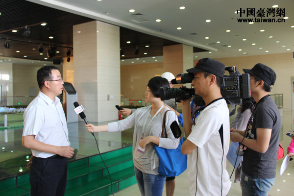 石嘴山市規劃展示館負責人接受兩岸記者采訪。(中國臺灣網 王文英 攝)