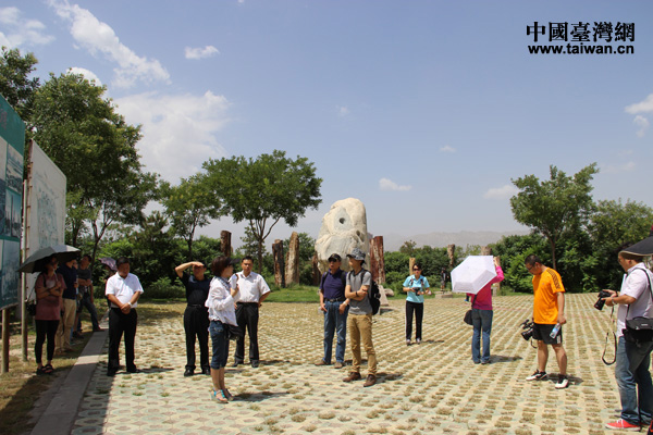 兩岸記者參觀石嘴山市中華奇石山。(中國臺灣網 王文英 攝)