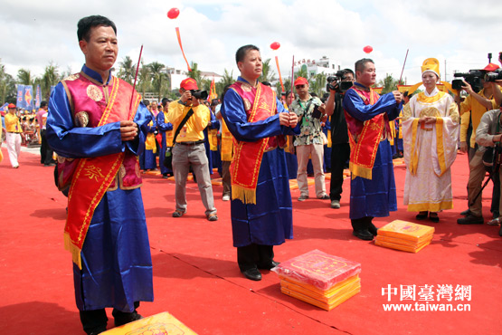 8月1日上午,2013兩岸媽祖佑南疆祈福祭典儀式在海南潭門港舉行。圖為祭典儀式現場。(中國臺灣網 李丹 攝)