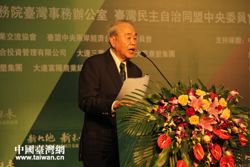 全球生物產(chǎn)物科技發(fā)展基金會董事長彭作奎發(fā)表題目為《結合兩岸發(fā)展優(yōu)勢,開創(chuàng)農(nóng)業(yè)合作新平臺》的專題演講。(中國臺灣網(wǎng) 王君飛 攝)