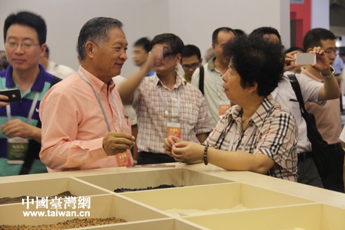 嘉賓在五谷雜糧區(qū)探討農(nóng)業(yè)知識。(中國臺灣網(wǎng) 王君飛 攝)