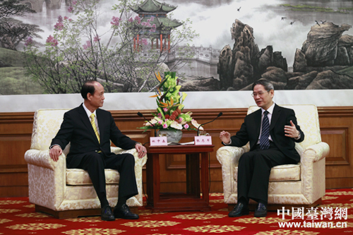 中共中央臺辦、國務(wù)院臺辦主任張志軍14日在北京會見了臺灣海基會董事長林中森及其率領(lǐng)的臺灣媒體高層大陸參訪團(tuán)。(中國臺灣網(wǎng) 王偉 攝)