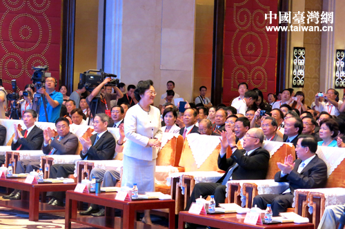 全國政協副主席、臺盟中央主席林文漪在開幕式上向出席大會的各界 及臺灣鄉親們表示問候。(中國臺灣網發 吳藝煤 攝)