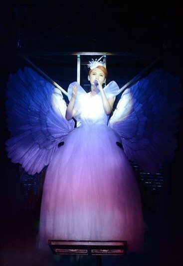 她昨穿白色洋裝,搭配5米寬的巨型機械羽翼,化身彩色蝴蝶,抱病獻唱6首歌曲,在臺上直呼:“今天大肆咳痰流鼻涕,但我要繼續(xù)唱,因為我很勇敢!”立刻引起現(xiàn)場1500名粉絲尖叫打氣。(中國臺灣網(wǎng) 高旭)