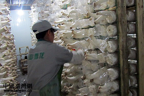 工人在采摘食用菌。(中國臺灣網 王偉 攝)