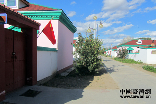 一連每家每戶門前都懸掛國旗。(中國臺灣網 王偉 攝)