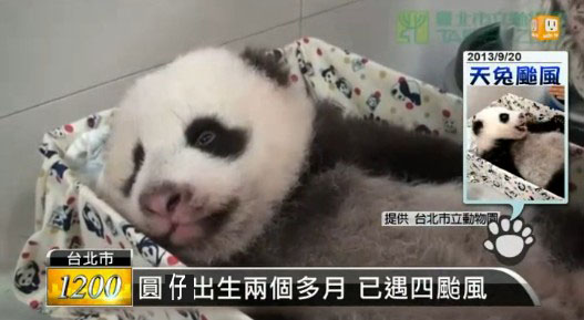 其實(shí),此次超強(qiáng)臺(tái)風(fēng)“天兔”已是圓仔第四次經(jīng)歷的臺(tái)風(fēng)天氣。7月13日“蘇力”臺(tái)風(fēng),圓仔出生7天,體重243克,身處保溫箱內(nèi),由保育員全程陪伴;8月21日“潭美”臺(tái)風(fēng),與媽媽同在室內(nèi)展場(chǎng),不過(guò)是在圓圓懷里度過(guò)的;8月31日“康妮”臺(tái)風(fēng),圓仔就被媽媽叼著不停地?fù)Q著舒服位置;9月20日,“天兔”臺(tái)風(fēng),圓仔體重月4.8公斤,不只能聽(tīng)得見(jiàn)聲音,而且再過(guò)幾天還會(huì)長(zhǎng)出牙齒。