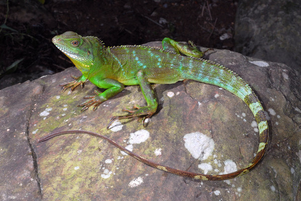 雄性綠水龍全長可達92公分,體型比臺灣所記錄到所有蜥蜴都大。(圖片來自臺媒)
