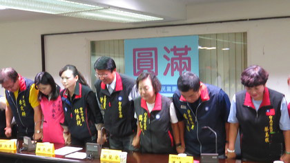 臺南市議會國民黨團(tuán)26日上午開“圓滿”記者會向支持守護(hù)銅像的社會大眾鞠躬感謝。(圖片取自臺媒)
