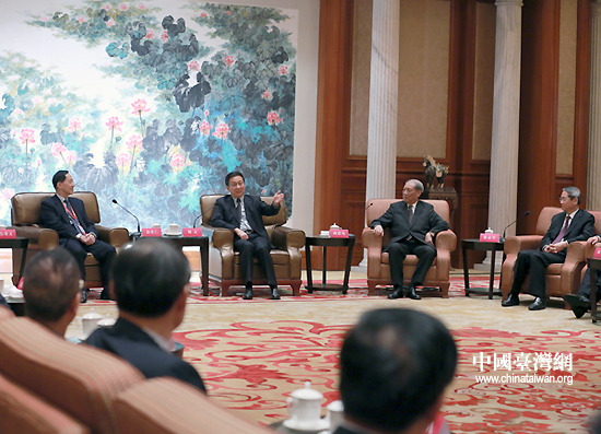 10月10日,中共中央政治局委員、上海市委書記韓正會見了到上海參加首屆兩岸和平論壇的臺灣學者和代表。 (中國臺灣網 田云鵬 攝)