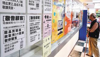 大統問題油事件如滾雪球,在臺灣引起軒然大波,賣場張貼停止販賣大統橄欖油公告。(來源:臺灣《聯合報》)