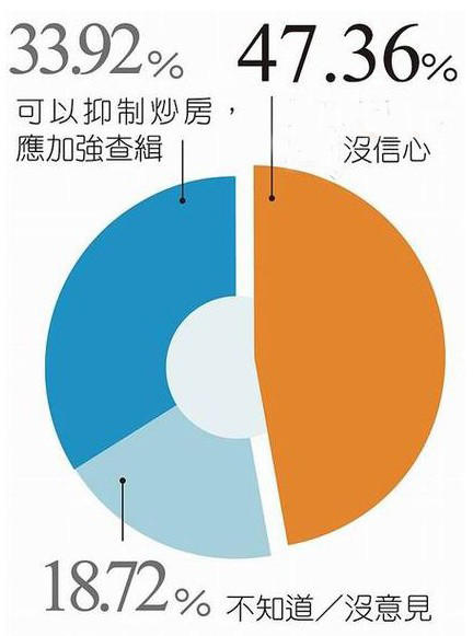 臺媒一項最新民調(diào)結(jié)果顯示,有近5成民眾對臺當局“財政部”取締炒房之舉沒信心。