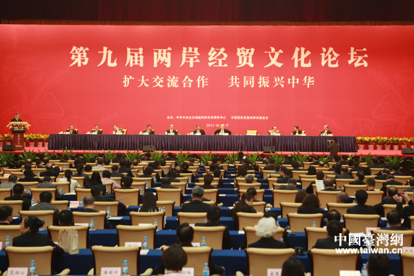 10月26日上午,以“擴(kuò)大交流合作,共同振興中華”為主題的第九屆兩岸經(jīng)貿(mào)文化論壇在廣西南寧開幕。(中國臺(tái)灣網(wǎng) 于斯文 攝)