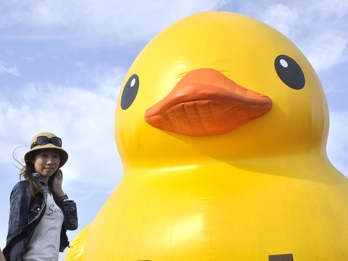 小黃鴨人氣不減,上班日仍吸引15萬人(臺媒圖)