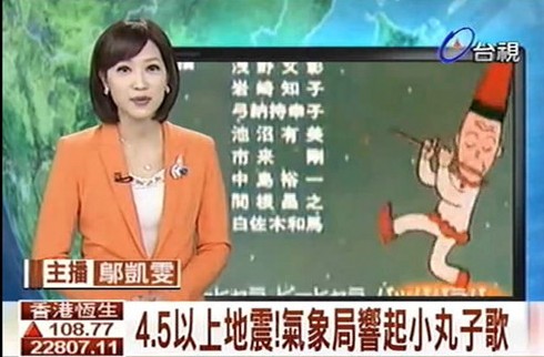 臺灣10年前地震警鈴播小丸子片尾曲(臺媒圖)