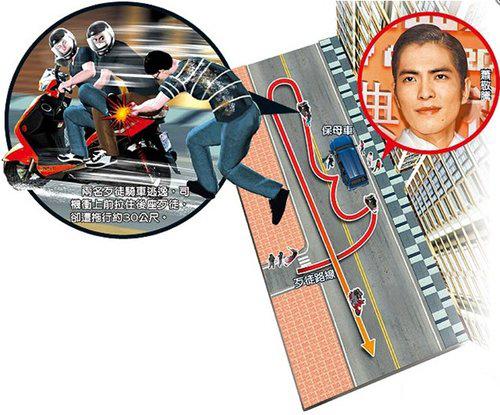 臺灣媒體制作的蕭敬騰被潑糞現場模擬圖。(圖片取自網絡)
