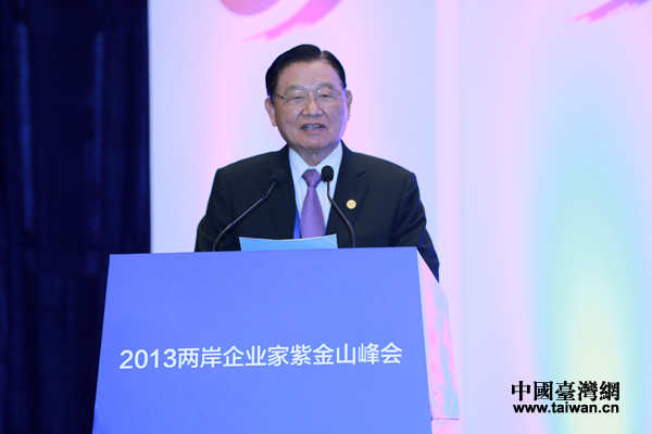 兩岸企業(yè)家峰會(huì)臺(tái)灣方面副理事會(huì)長江丙坤在閉幕式上作總結(jié)發(fā)言。(中國臺(tái)灣網(wǎng) 王偉 攝)
