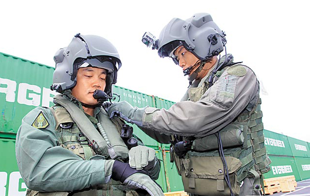 阿帕奇直升機(jī)起飛前,曾赴美受訓(xùn)的飛行員互相檢測裝備。(圖片來自臺媒)