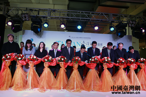 “臺灣文創精品館”7日在第八屆北京國際文化創意產業博覽會上正式開館,圖為與會嘉賓為開館剪彩。(中國臺灣網 王偉 攝)