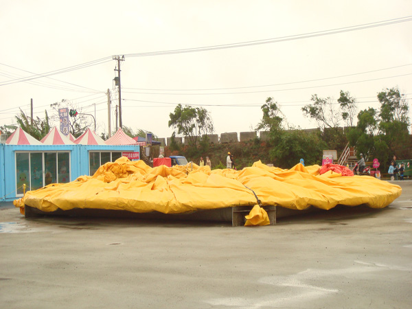 桃園地景廣場(chǎng)藝術(shù)節(jié)即將閉幕,桃園大黃鴨能不能趕在閉幕前夕,再度重回陂塘悠游,由于東北季風(fēng)稍為減弱,有機(jī)會(huì)利用空檔,重新對(duì)大黃鴨進(jìn)行充氣作業(yè)。桃園縣文化局長(zhǎng)張壯謀表示,8日中午左右會(huì)在后湖塘前方廣場(chǎng)進(jìn)行充氣前置準(zhǔn)備,如果天候狀況達(dá)到安全的許可之下,會(huì)進(jìn)行浮臺(tái)吊掛及充氣。